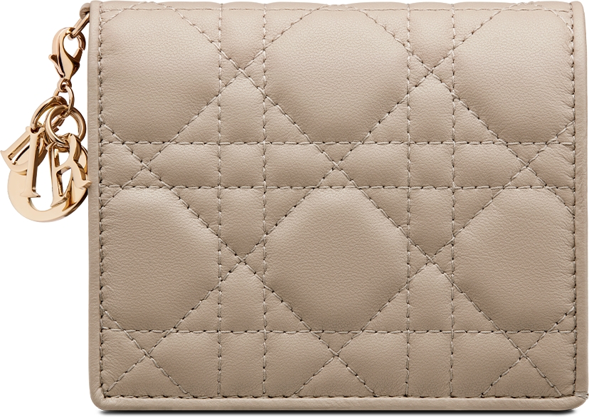 DIOR Mini Lady Dior Gardenia Wallet Black Cannage Lambskin Women Very well made.
