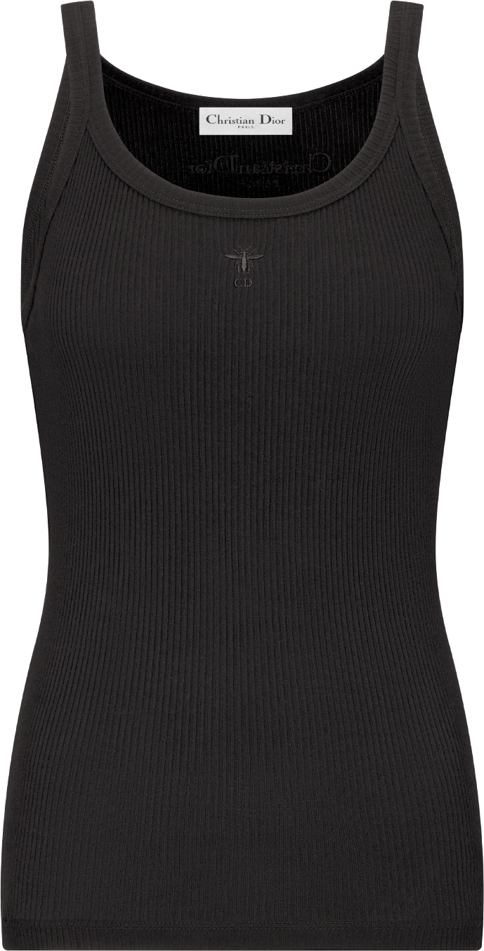 DIOR Tank Top Black Ribbed Cotton Jersey Size XL Women Very well made.