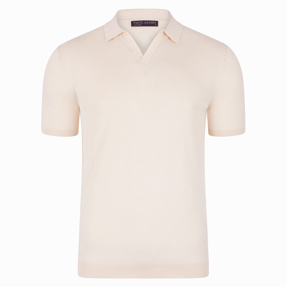 Men s Ultra Fine Cotton Nathan Buttonless Polo Shirt Ecru by Paul James Knitwear Very well made.
