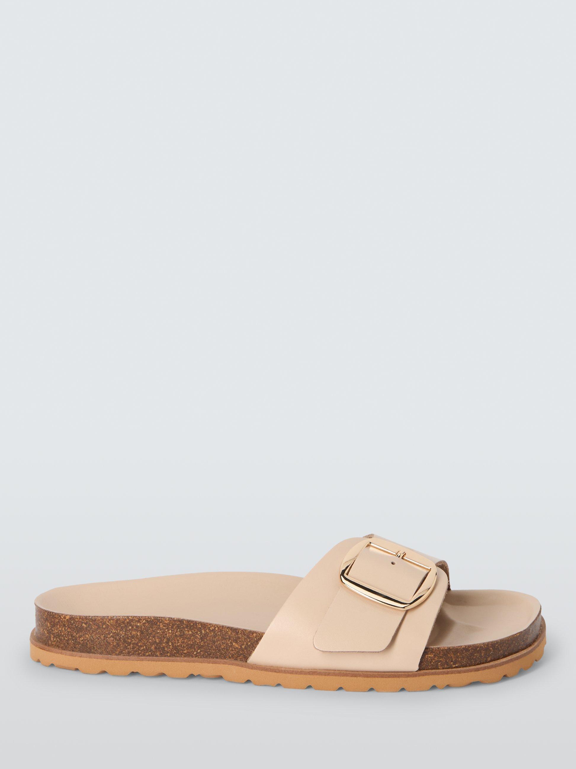 John Lewis Lyon Leather Single Buckle Footbed Sandals Cream Very well made.