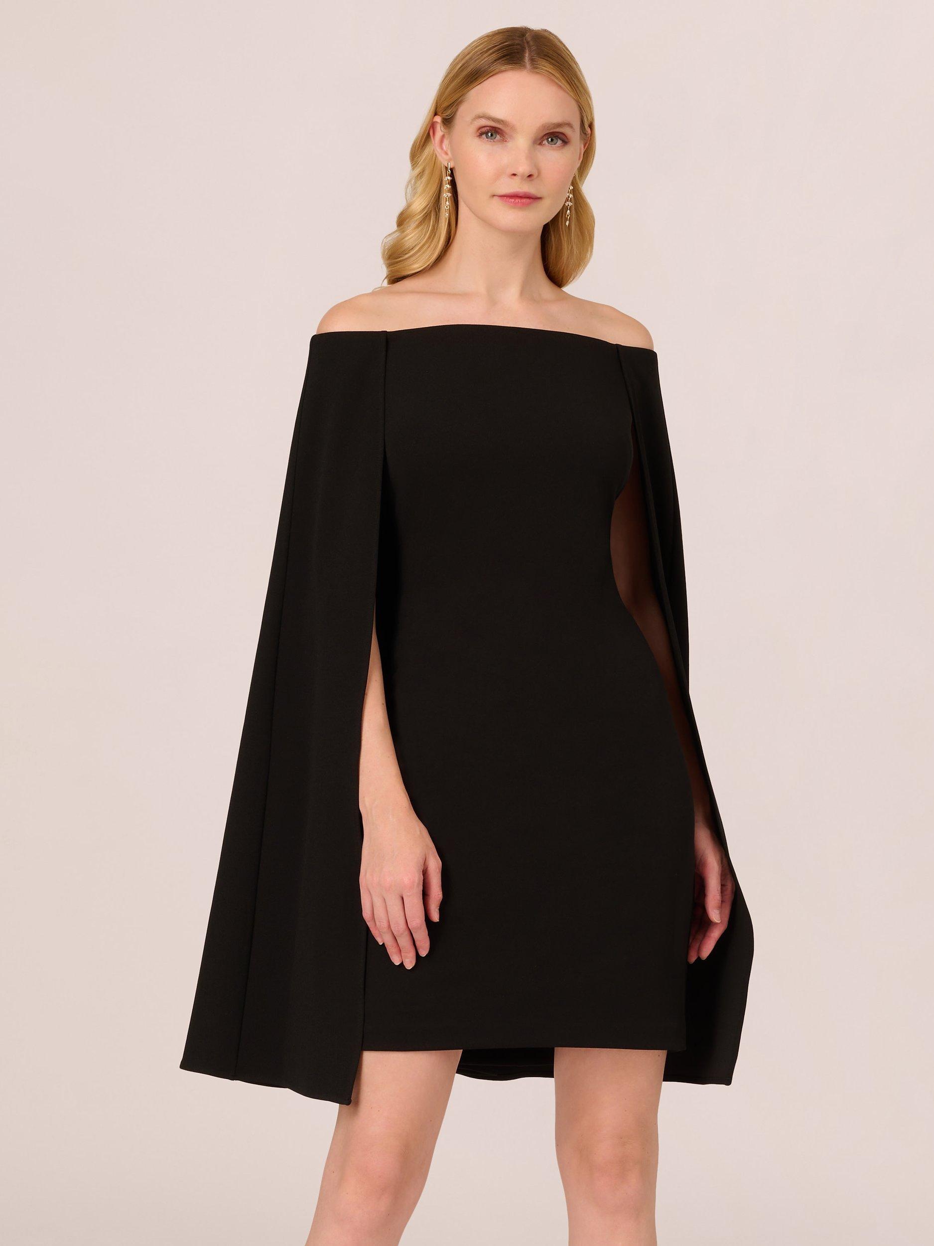 Adrianna Papell Off Shoulder Cape Mini Dress Black Very well made.