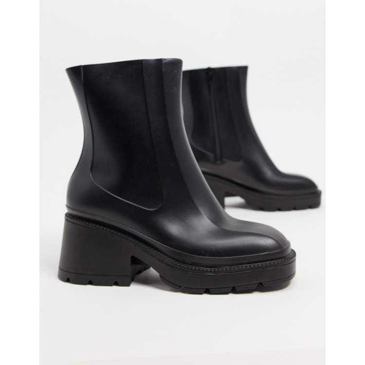 ASOS DESIGN Grounded heeled rain boots in black Very well made.