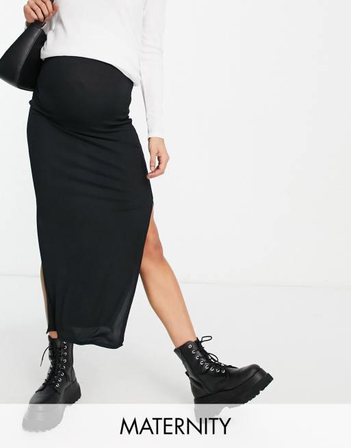 Cotton Knee Length Black Maternity Skirt OverBelly Very well made.