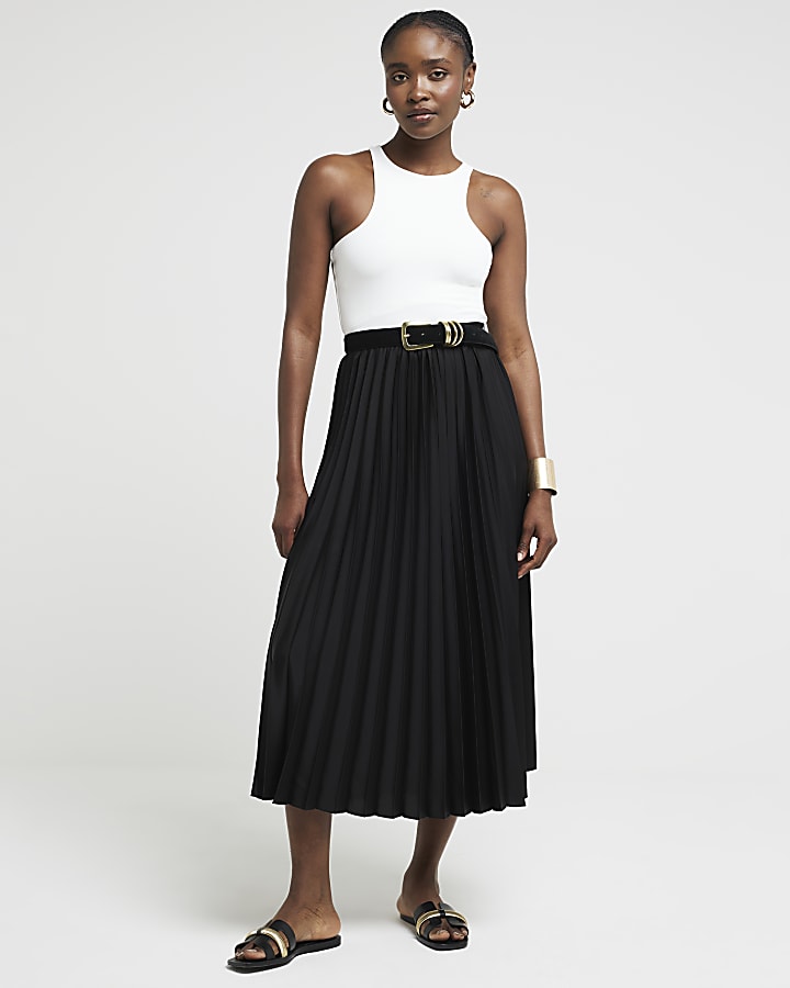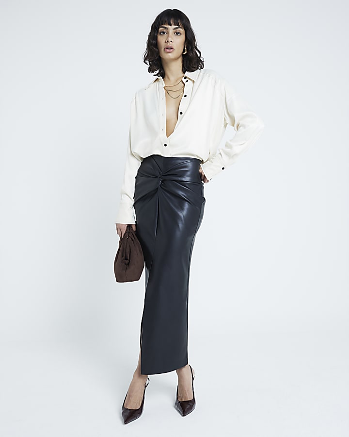 Black Twist Detail Faux Leather Midi Skirt River Island Very well made.