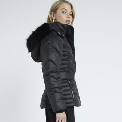 Ladies Size 20 Plus River Island Black Belted Puffer Jacket Coat Faux Fur Hood B eBay Very well made.