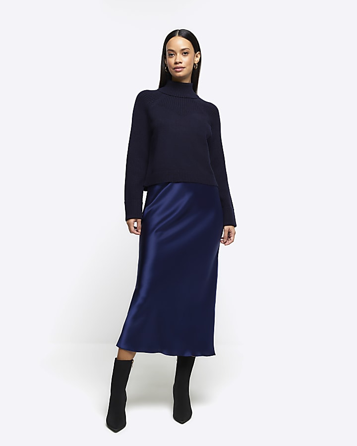 Navy satin maxi skirt Very well made.