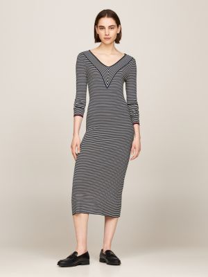 Geripptes Slim Fit Bodycon Kleid mit Streifen Blau Tommy Hilfiger Very well made.
