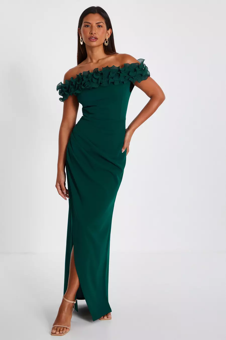 Bottle Green Ruffle Bardot Maxi Dress QUIZ Clothing Very well made.