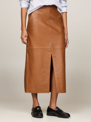 Napa Leather Straight Midi Skirt Brown Tommy Hilfiger Very well made.