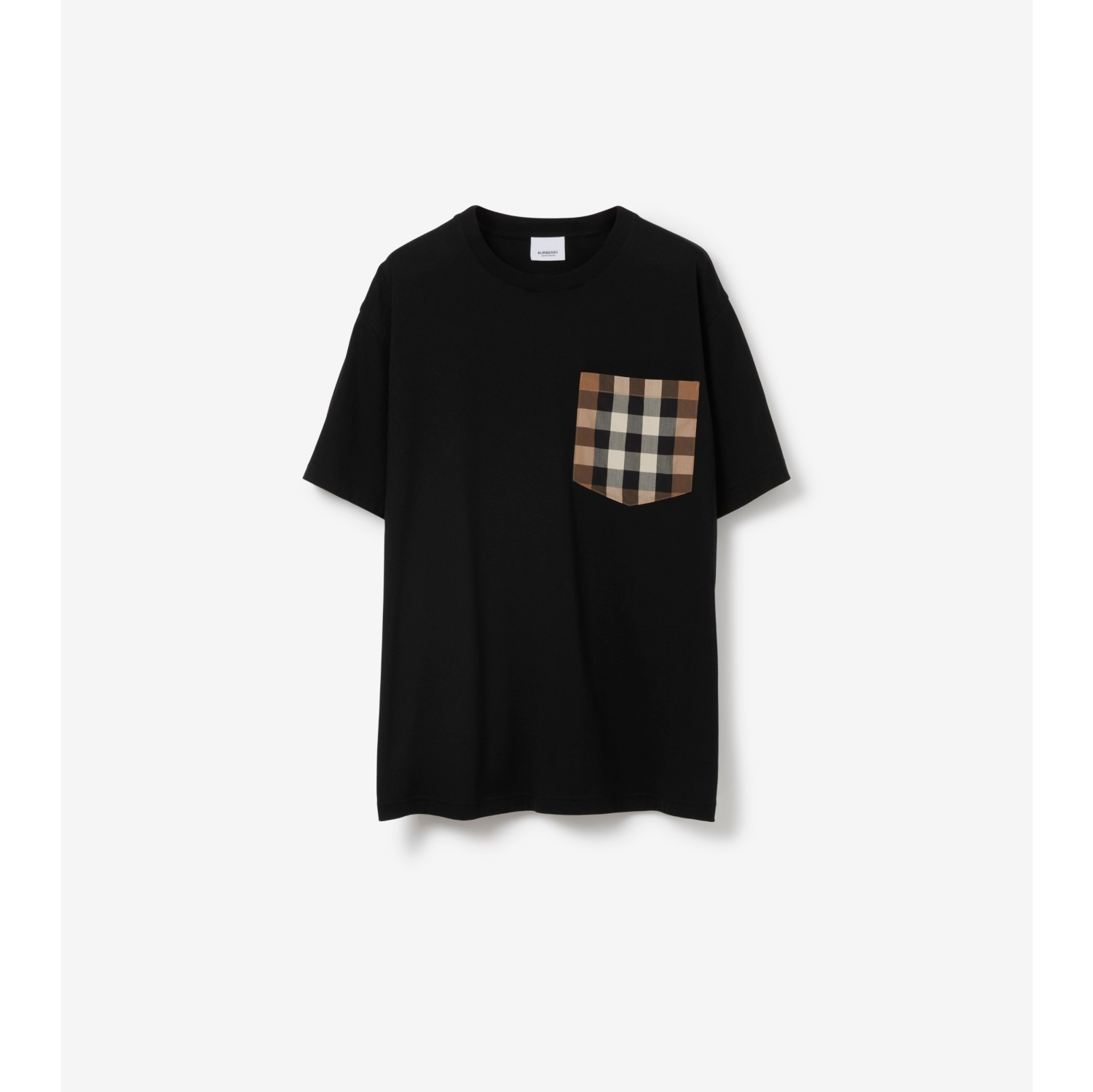 Check Pocket Cotton T shirt in Black Women Burberry Official Very well made.