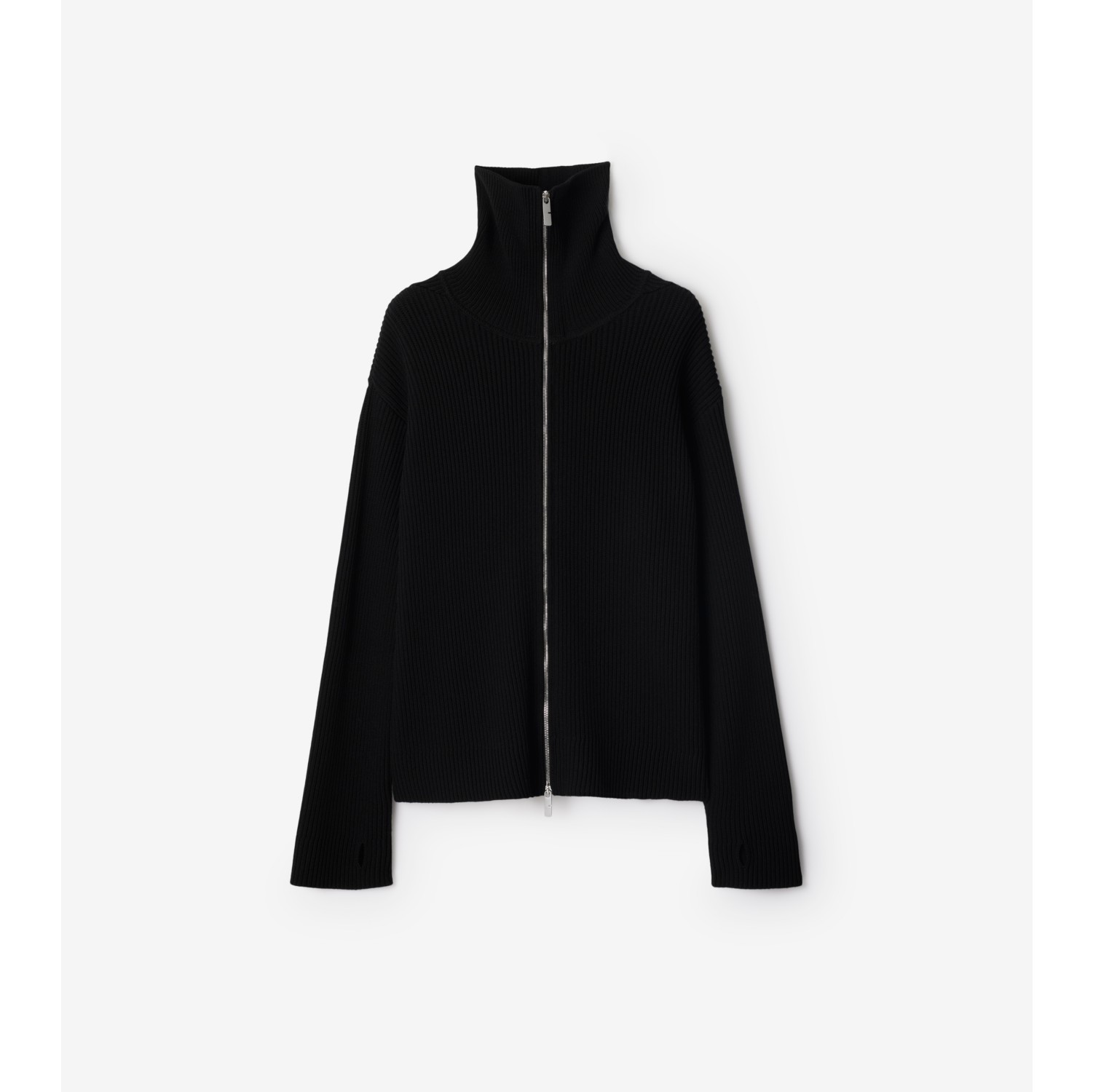 Wool Blend Zip Sweater in Black Men Burberry Official Very well made.