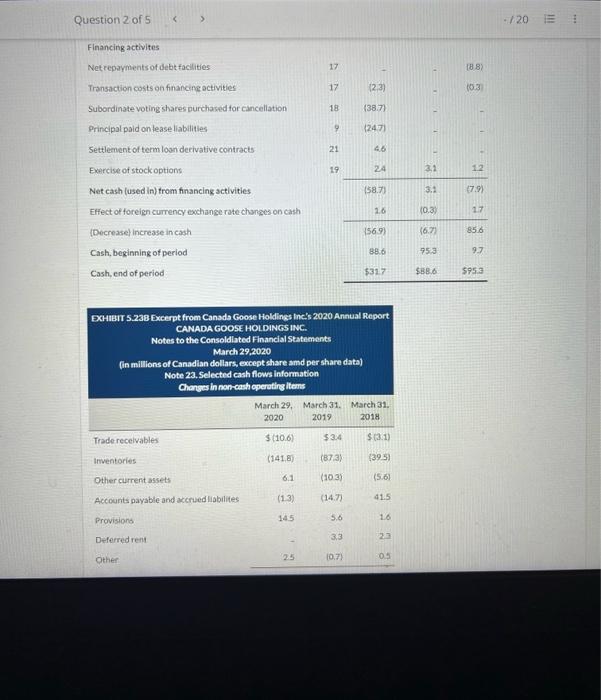 Solved Question 2 of 5 EXHIBr 5.23A Canada Goose Holdings Chegg Very well made.