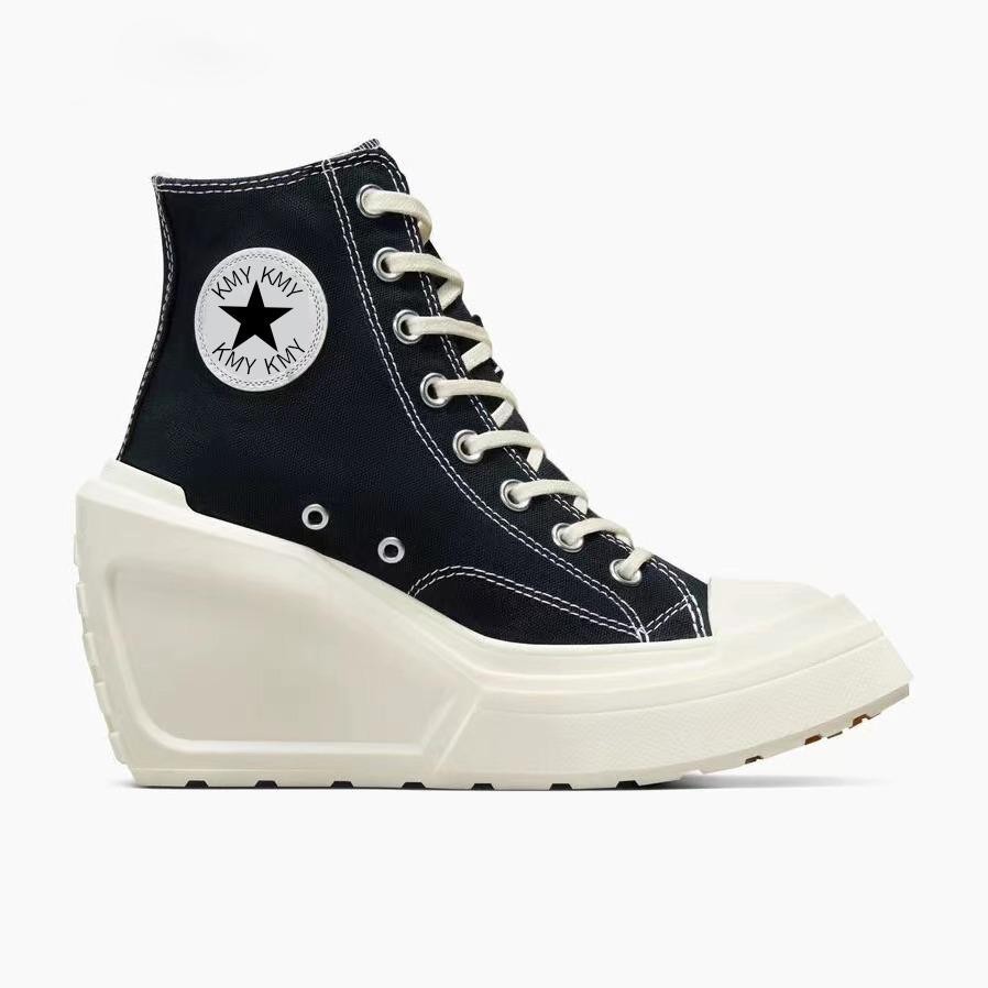 Buy High Heel Canvas Wedge Sneakers Trendy Comfy Sneakers with 1 Wedge Heels for Women Girls Ankle Zipper Lace Up High Heel Cotton Tennis Shoes Women 9 Very well made.