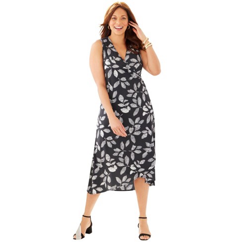 Catherines Women s Plus Size Effortless Faux Wrap Dress 0X Black Etched Leaves Very well made.