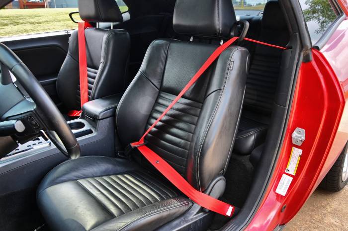 Installing Custom Flame Red Seat Belts on a 2012 Dodge Challenger RT Very well made.