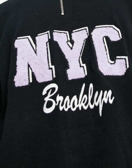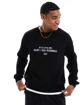 Bershka front graphic ribbed knit sweater in black Very well made.