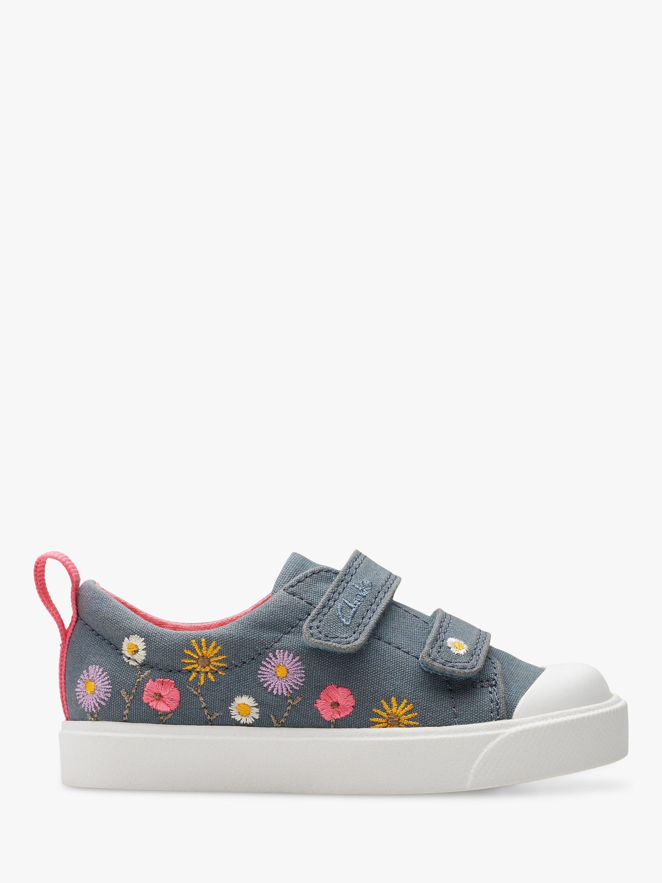 Clarks Kids City Bright Canvas Floral Embroidered Trainers Blue Very well made.