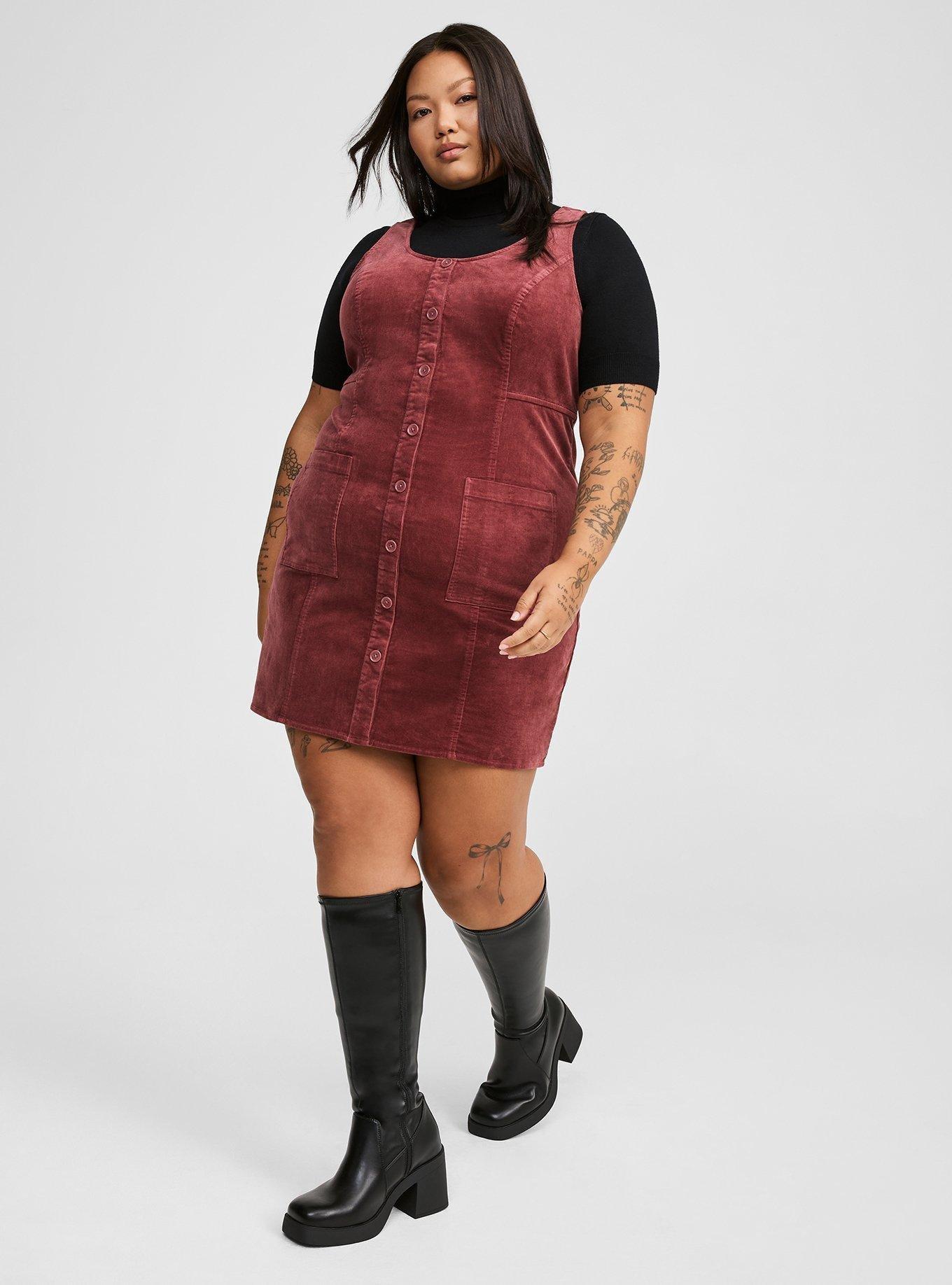 Plus Size Mini Sleeveless Button Front Patch Pocket Corduroy Dress Torrid Very well made.