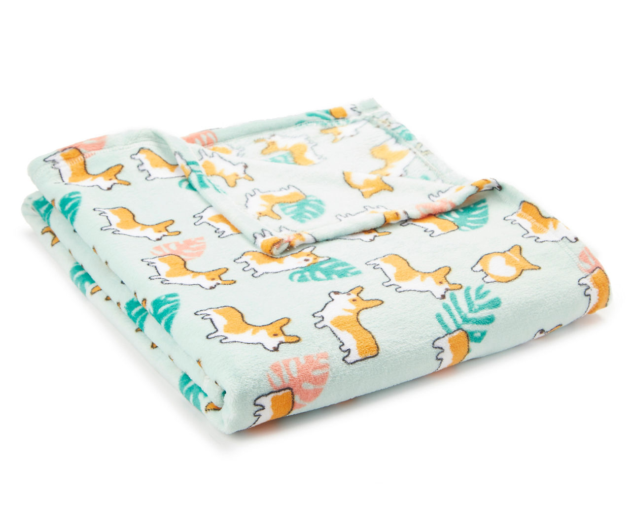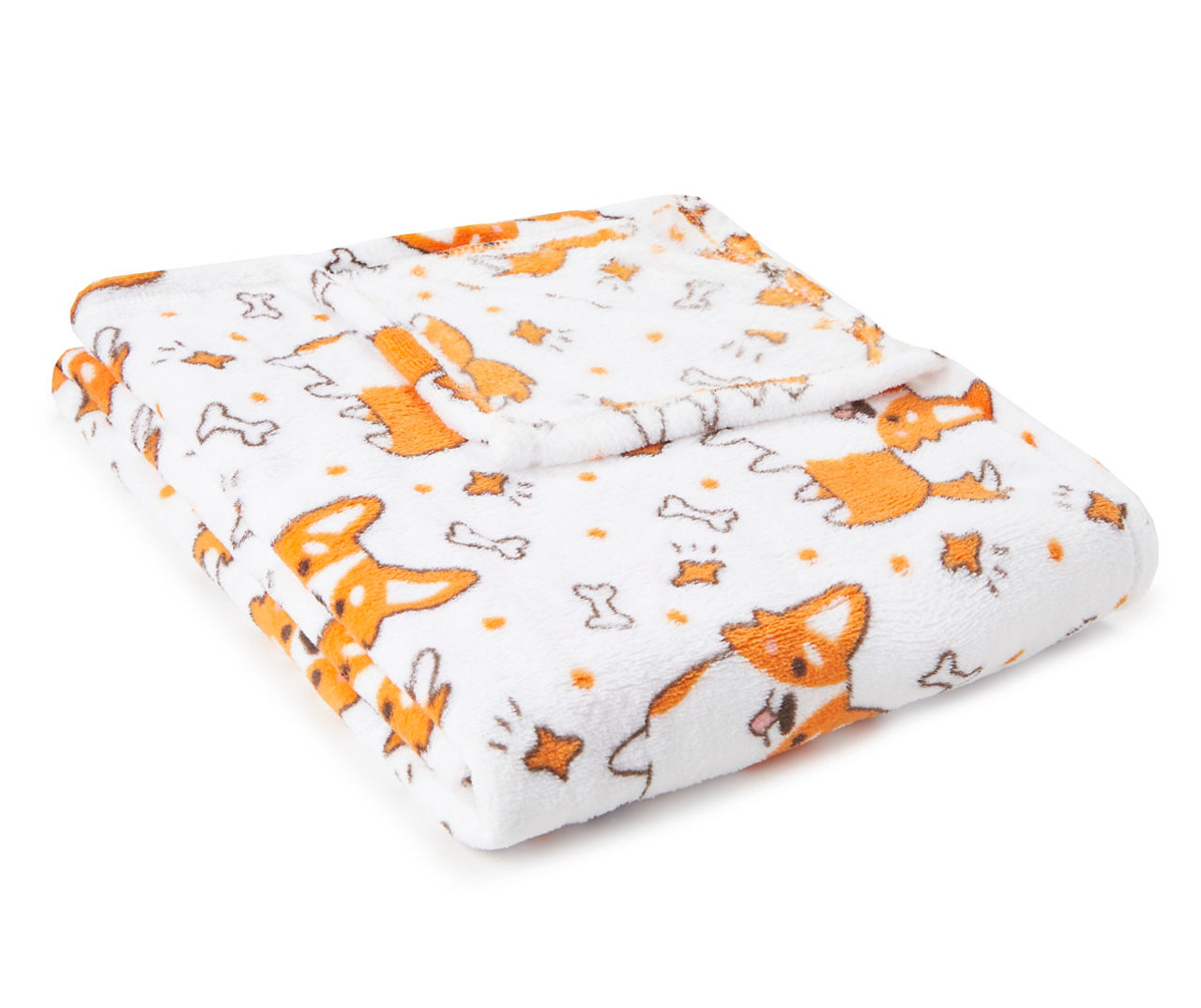 White Corgi Bones Printed Coral Fleece Throw 50 x 60 Very well made.