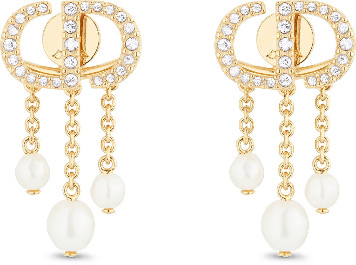 Petit CD Earrings Gold Finish Metal White Resin Pearls and White Crystals DIOR Very well made.
