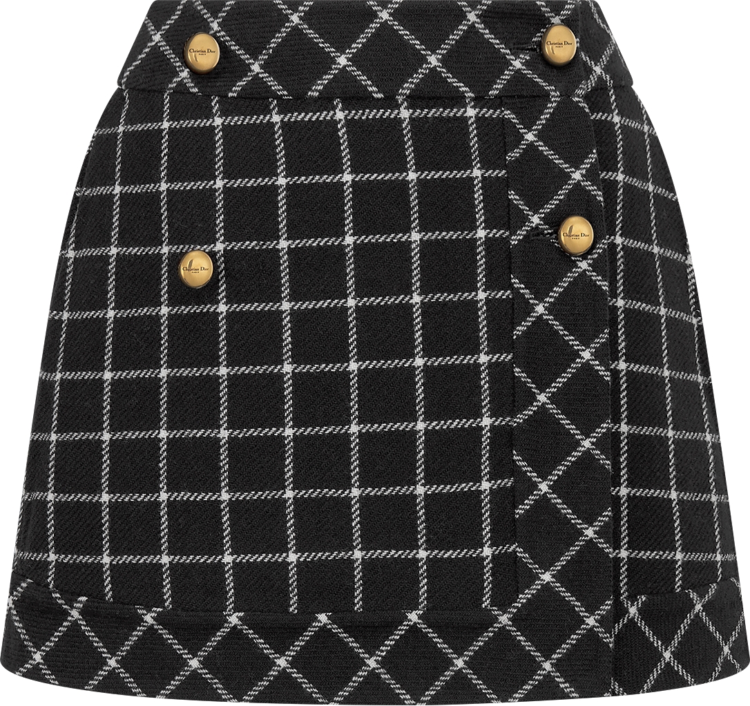 Wrap Miniskirt Black and White Double Sided Check n Dior Virgin Wool DIOR Very well made.
