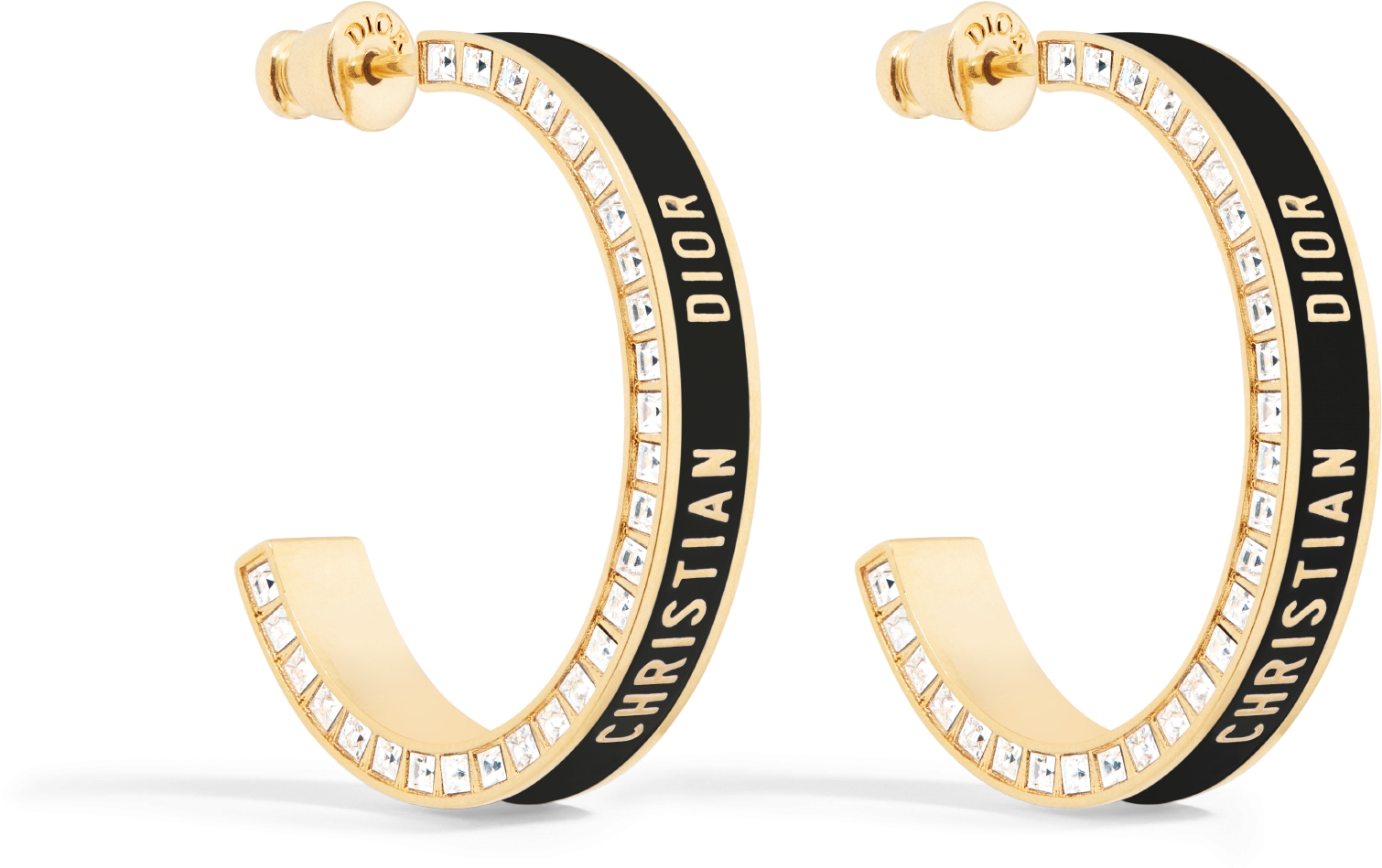 Large Dior Night Code Hoop Earrings Gold Finish Metal White Crystals and Black Lacquer DIOR Very well made.