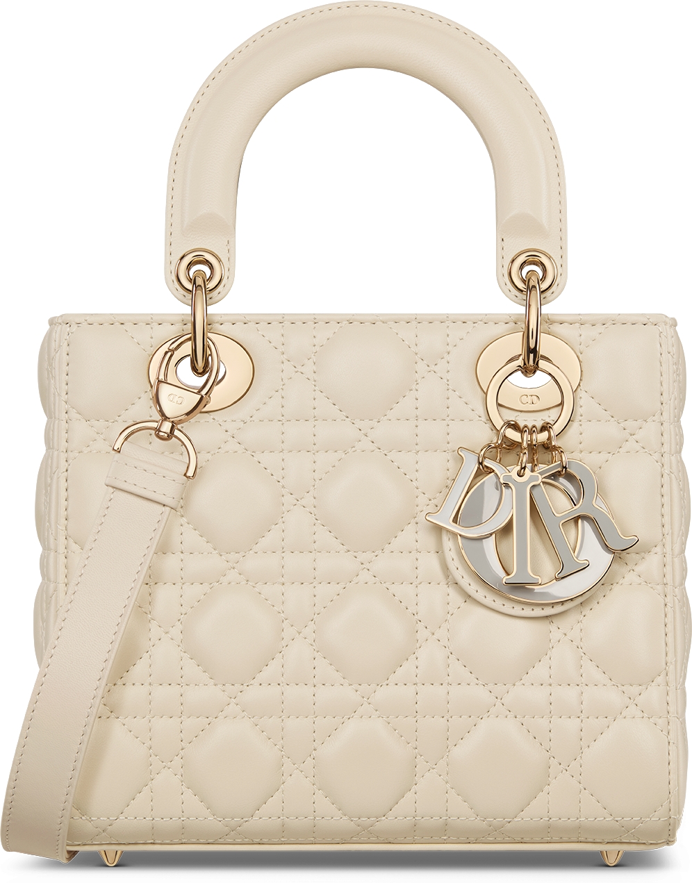 Small Lady Dior Bag Two Tone Dusty Ivory and Golden Saddle Lambskin DIOR Very well made.