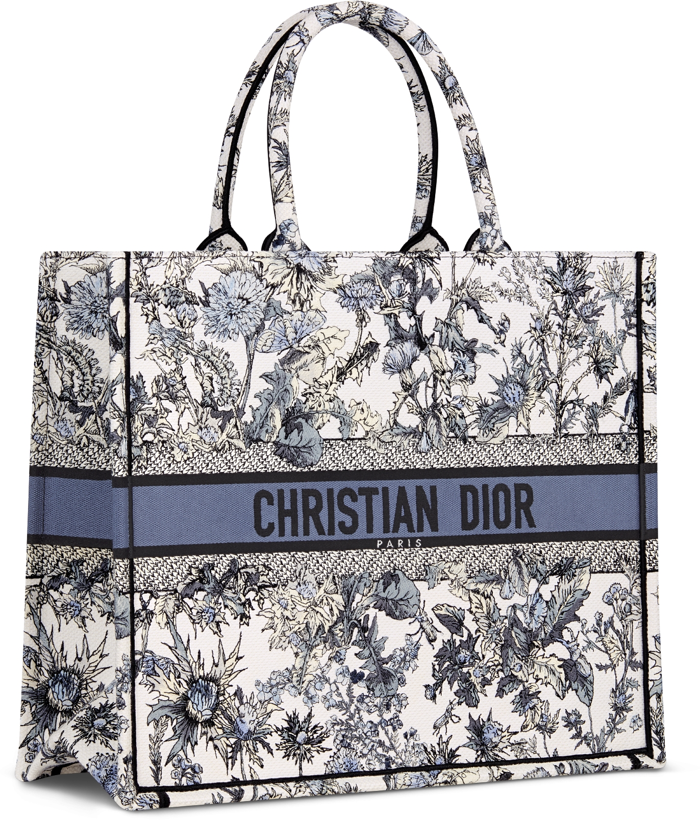 Large Dior Book Tote White Embroidery with Denim Blue Dior Chardons Motif 42 x 35 x 18.5 cm DIOR Very well made.