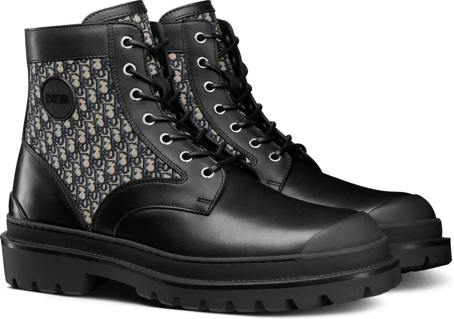 Dior Combat Ankle Boot Black Polished Calfskin and Dior Oblique Jacquard DIOR Very well made.