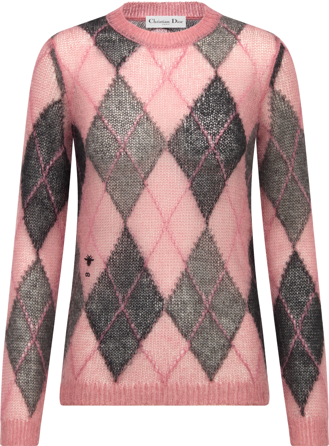 DIOR Sweater Pink And Gray Blended Mohair Alpaca And Wool Knit With Graphic Motifs Size 40 Women Very well made.