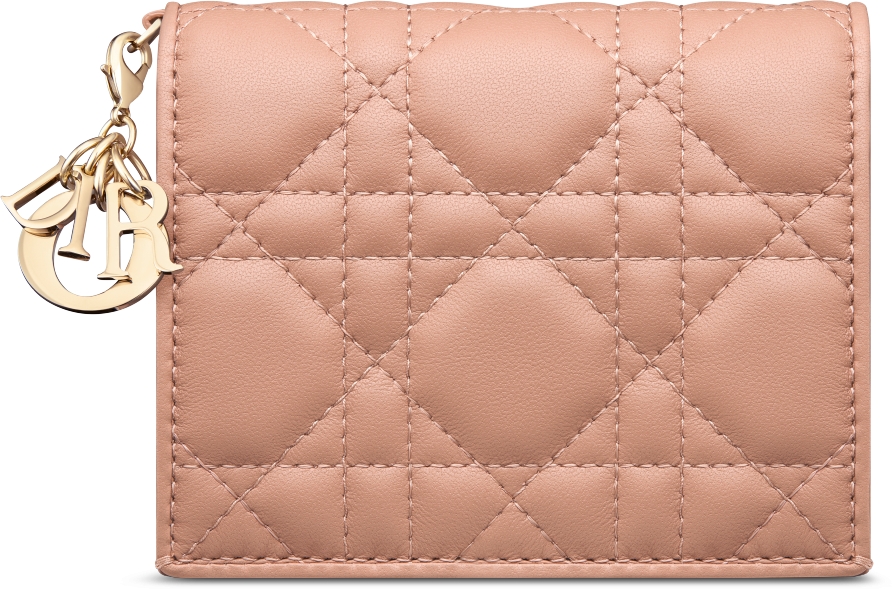 DIOR Mini Lady Dior Gardenia Wallet Powder Pink Cannage Lambskin Women Very well made.
