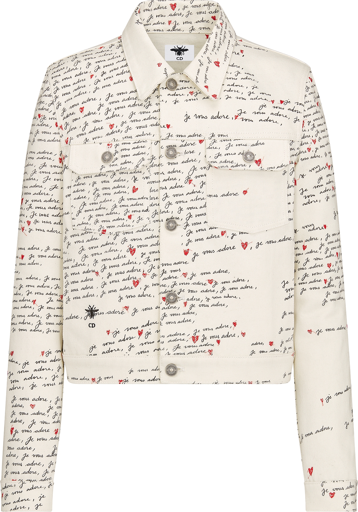 DIOR Dioramour Jacket White Cotton Denim With Black And Red Embroidered Je Vous Adore Motif Size 38 Women Very well made.