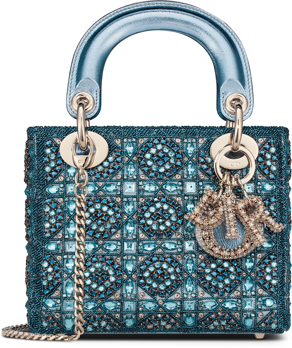 DIOR Mini Lady Dior Bag Metallic Lambskin And Rose Des Vents Satin Embroidered With Beads Women Very well made.