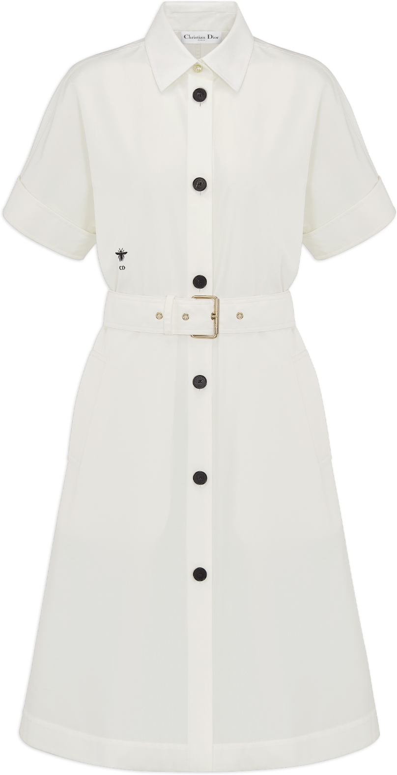 DIOR Belted Shirtdress Ecru Cotton And Silk Poplin Size 36 Women Very well made.