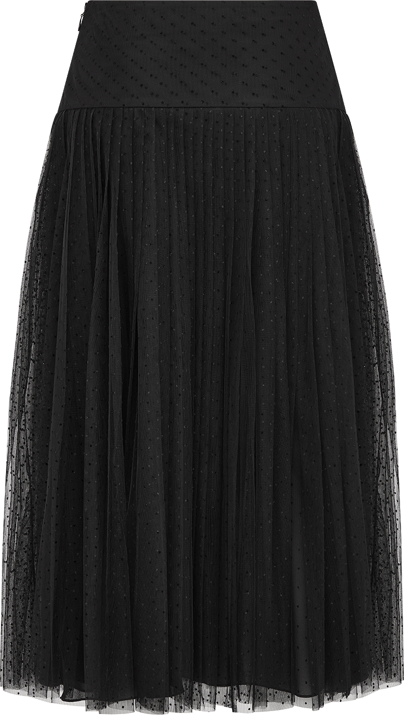 DIOR Pleated Mid Length Skirt Black Plumetis Tulle Size 42 Women Very well made.