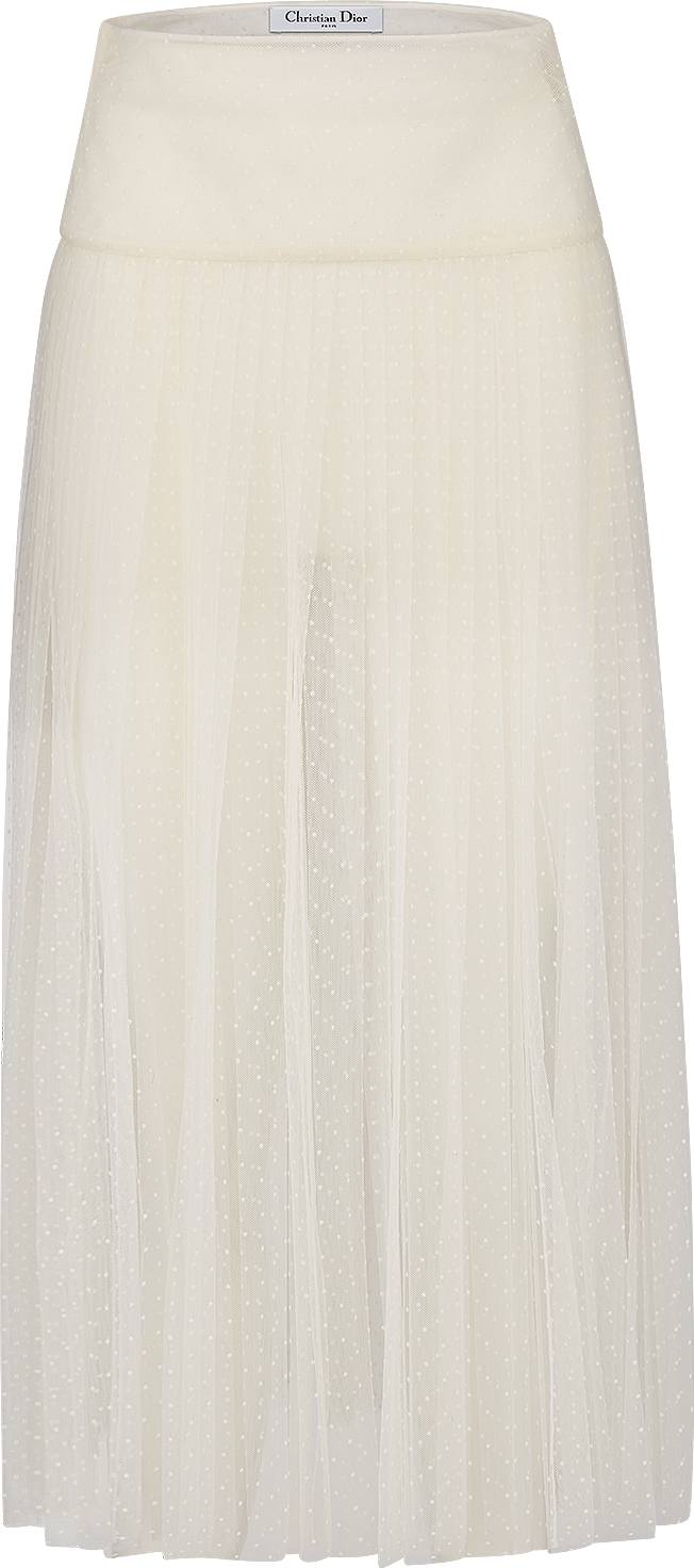DIOR Pleated Mid Length Skirt Ecru Plumetis Tulle Size 36 Women Very well made.