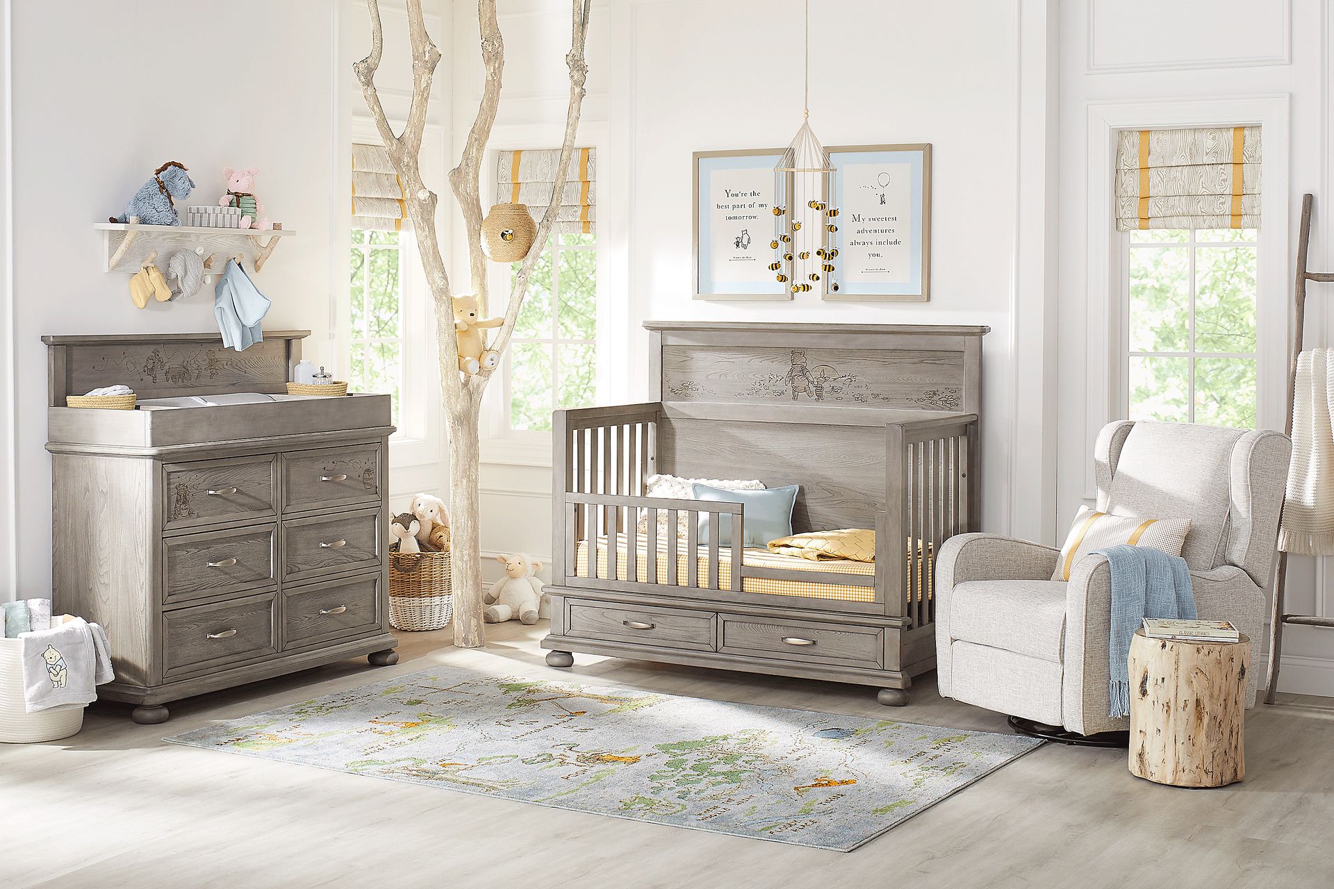 Disney Woodland Adventures With Winnie The Pooh 5 Pc Gray Bedroom Set With Dresser Crib Changing Table Toddler Rail Rooms to Go Very well made.
