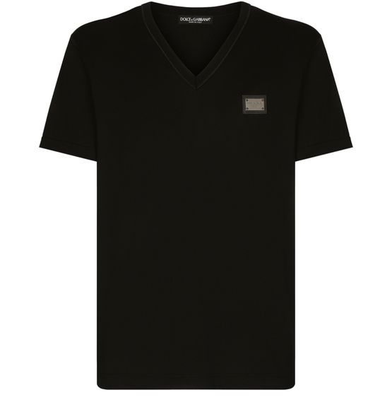 Dolce Gabbana Black Cotton V Neck T Shirt With Branded Tag for Men size 44 IT 24S Very well made.