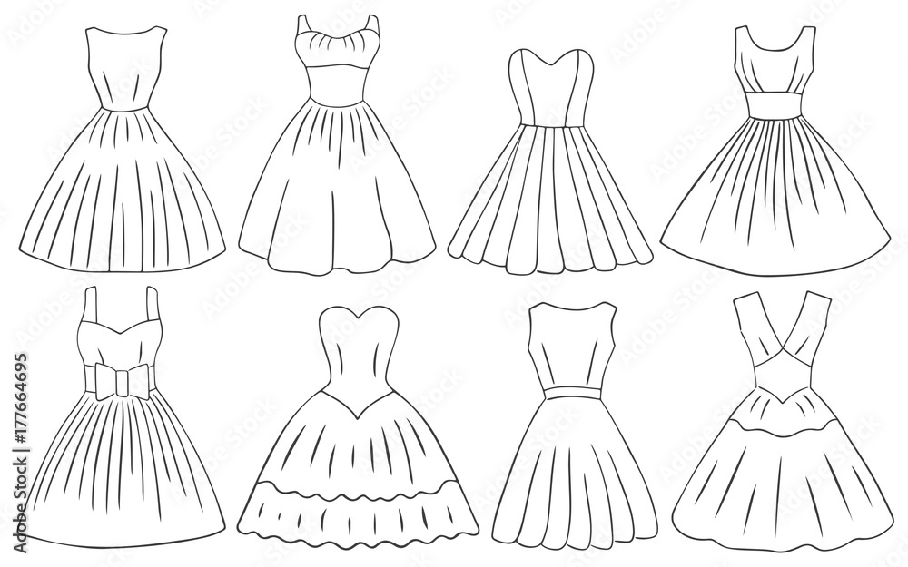 Doodle dresses set retro style women dresses black white Stock Vector Adobe Stock Very well made.