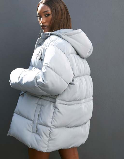 ASOS DESIGN Weekend Collective Doudoune avec detail a la taille et logo Gris ASOS Very well made.