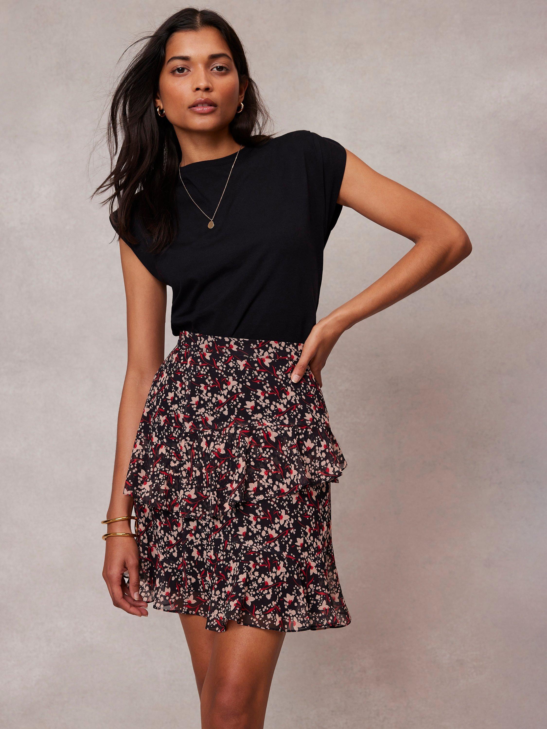 Mint Velvet Floral Ruffle Mini Skirt Black Multi Very well made.