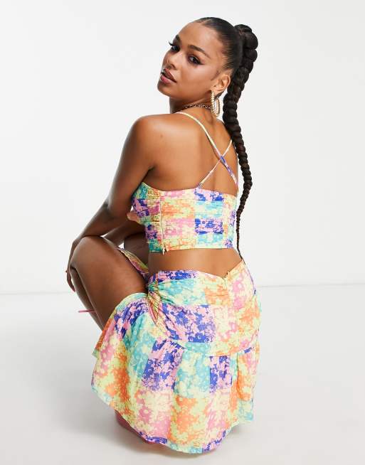 Buy Bershka shirred mini rara skirt in black floral online Topofstyle Very well made.