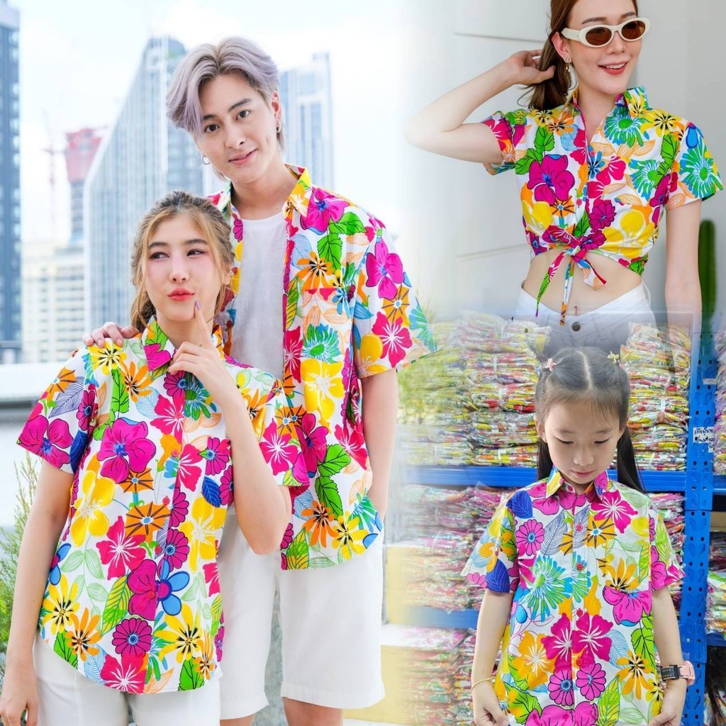 06 Full Team Songkran Shirt Flower Pattern 100 Cotton Fabric Sharp Color Does Not Fade Very well made.