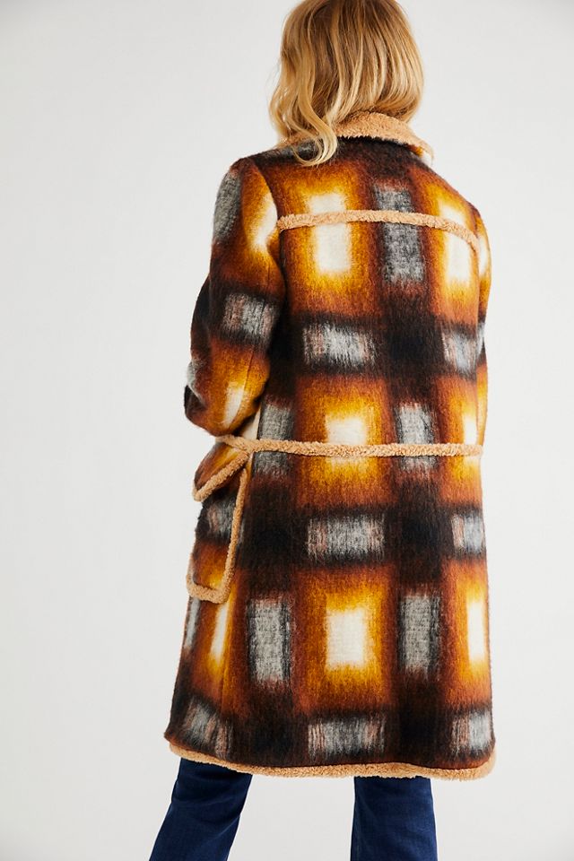 Ombre Plaid Faux Shearling Coat Free People Very well made.