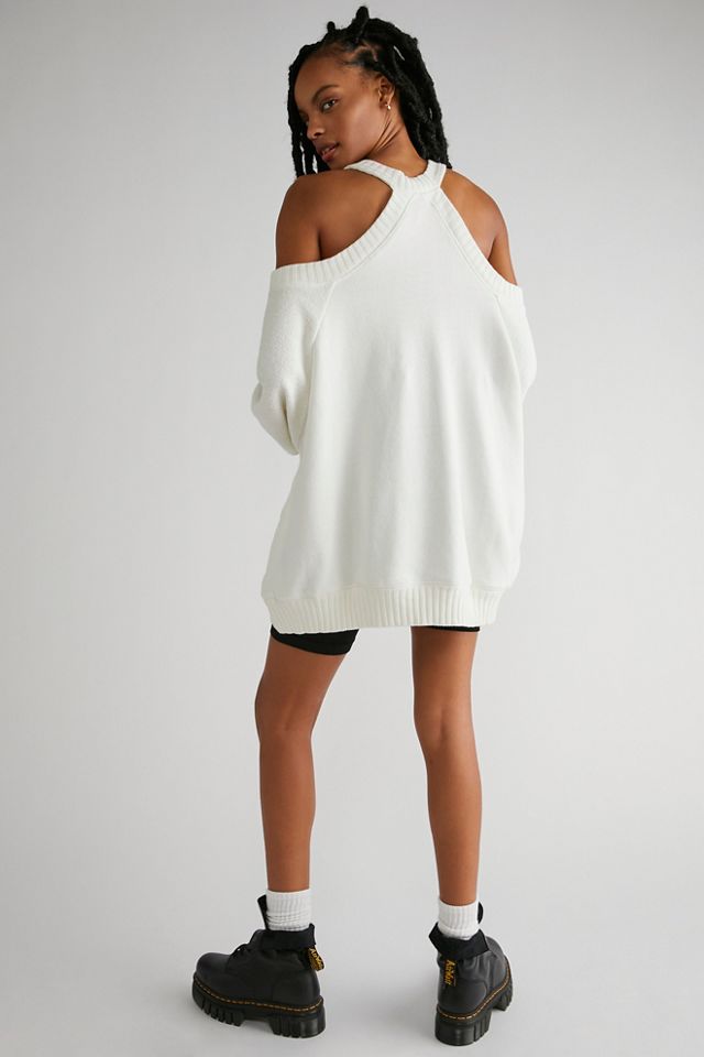 Free People These Shoulders Pullover Slouchy Cold Shoulder Ivory White L NEW eBay Very well made.