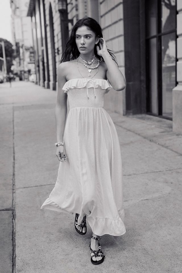 Free People LENA MIDI Dress Ivory Terracotta Linen Cotton Summer Very well made.