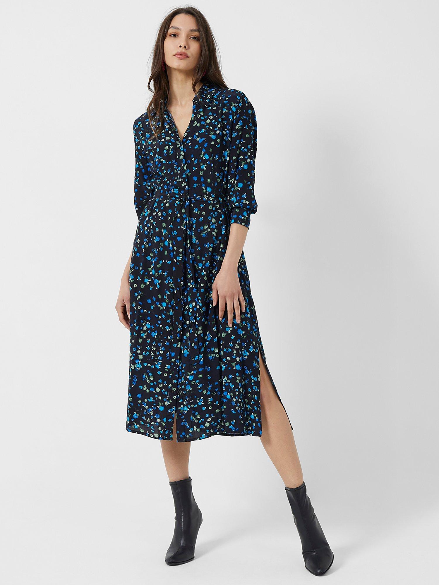 French Connection Ferna Bella Delphine Shirt Midi Dress Black Multi Very well made.