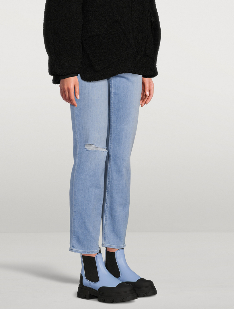 Ganni Leather Mid Chelsea Boot in Placid Blue NWT Platform Rubber Lug Sole 7 8 Very well made.