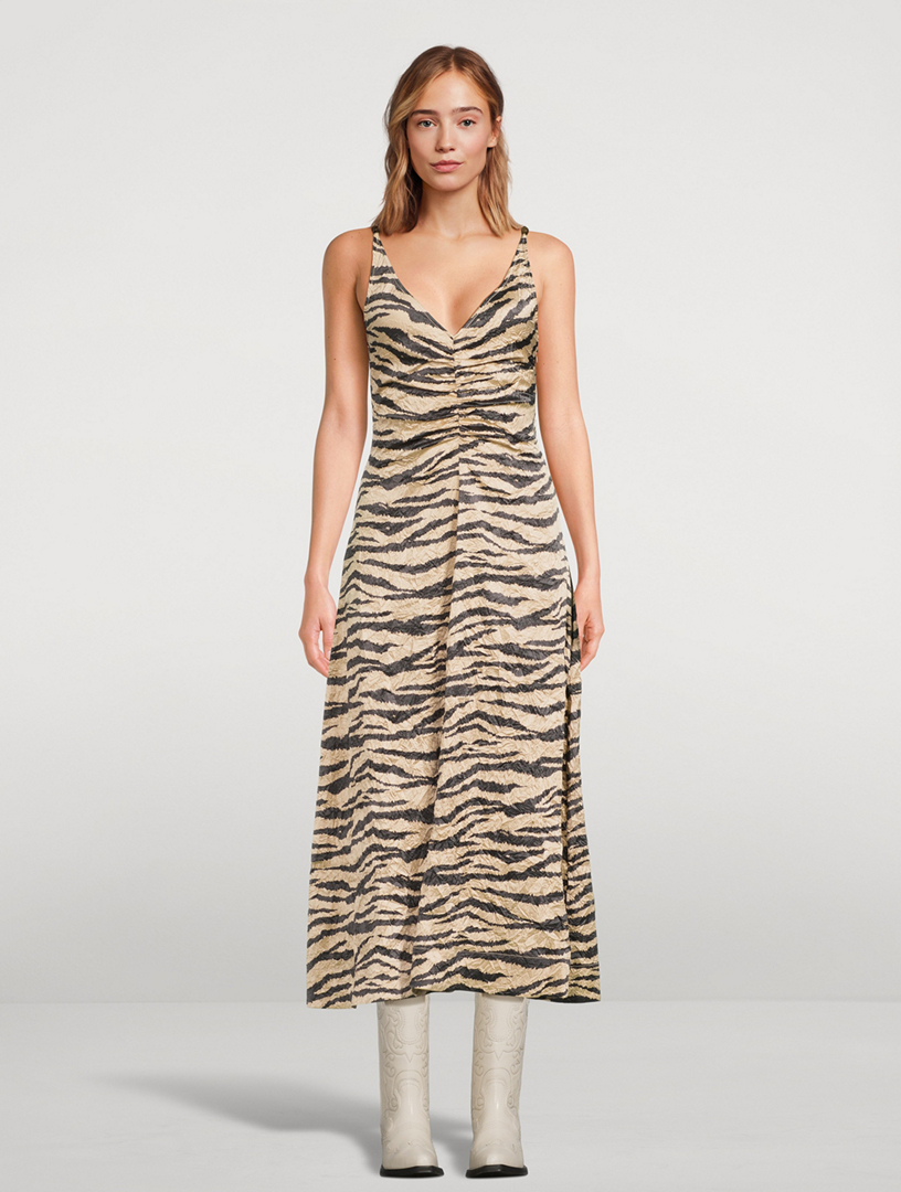 GANNI Crinkled Satin Maxi Dress In Zebra Print Holt Renfrew Very well made.