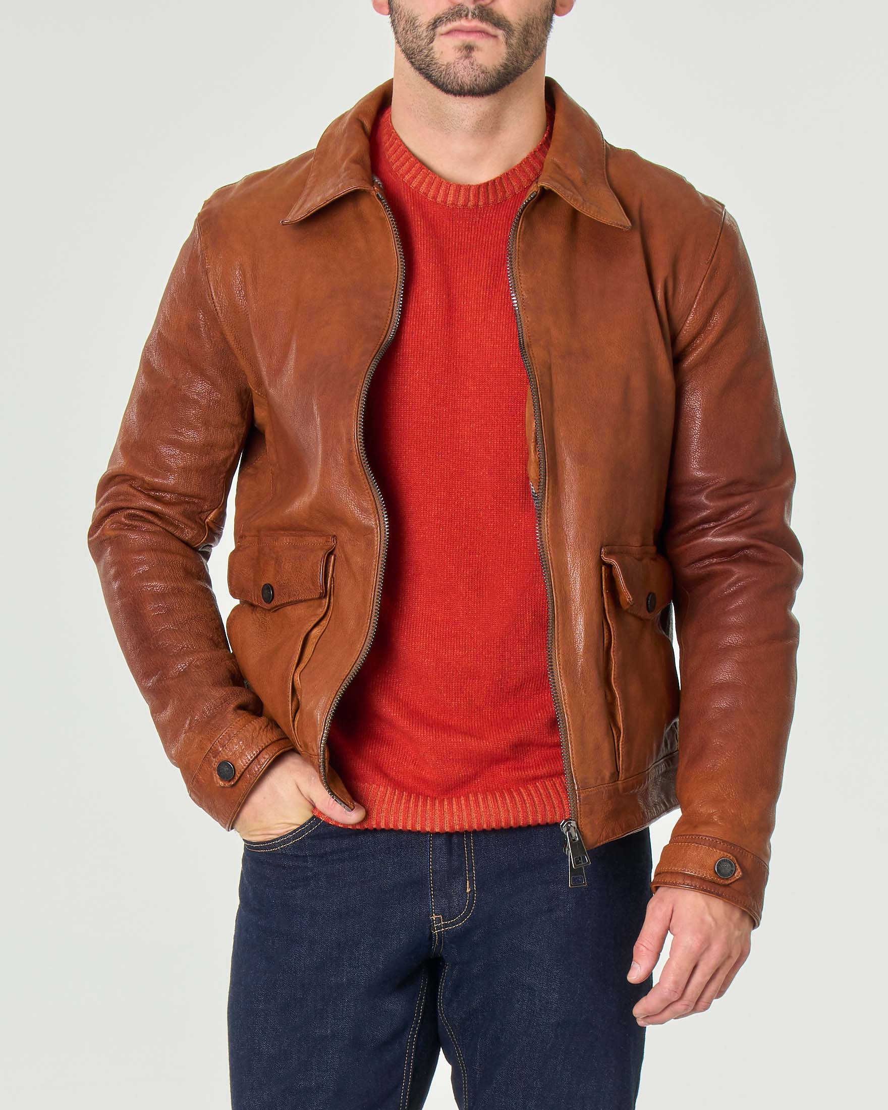 Giubbotto Pelle con Polsi e Cintura Lana Uomo 23 Very well made.